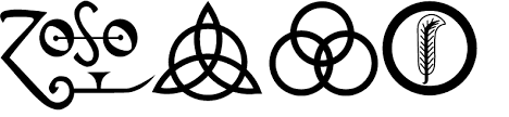 It was on Led Zeppelin IV that the symbolism became more overt. No band name or title graced the cover or spine. Inside, a haunting painting of the hermit, a powerful tarot card symbol, was the sole image. On the inner sleeve-more esoterica. Four symbols boldly across the sleeve. From left to right, these represent Page, Jones, Bonham and Plant.